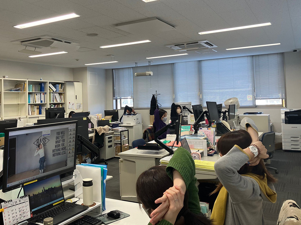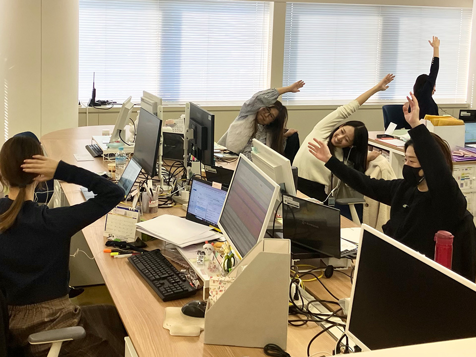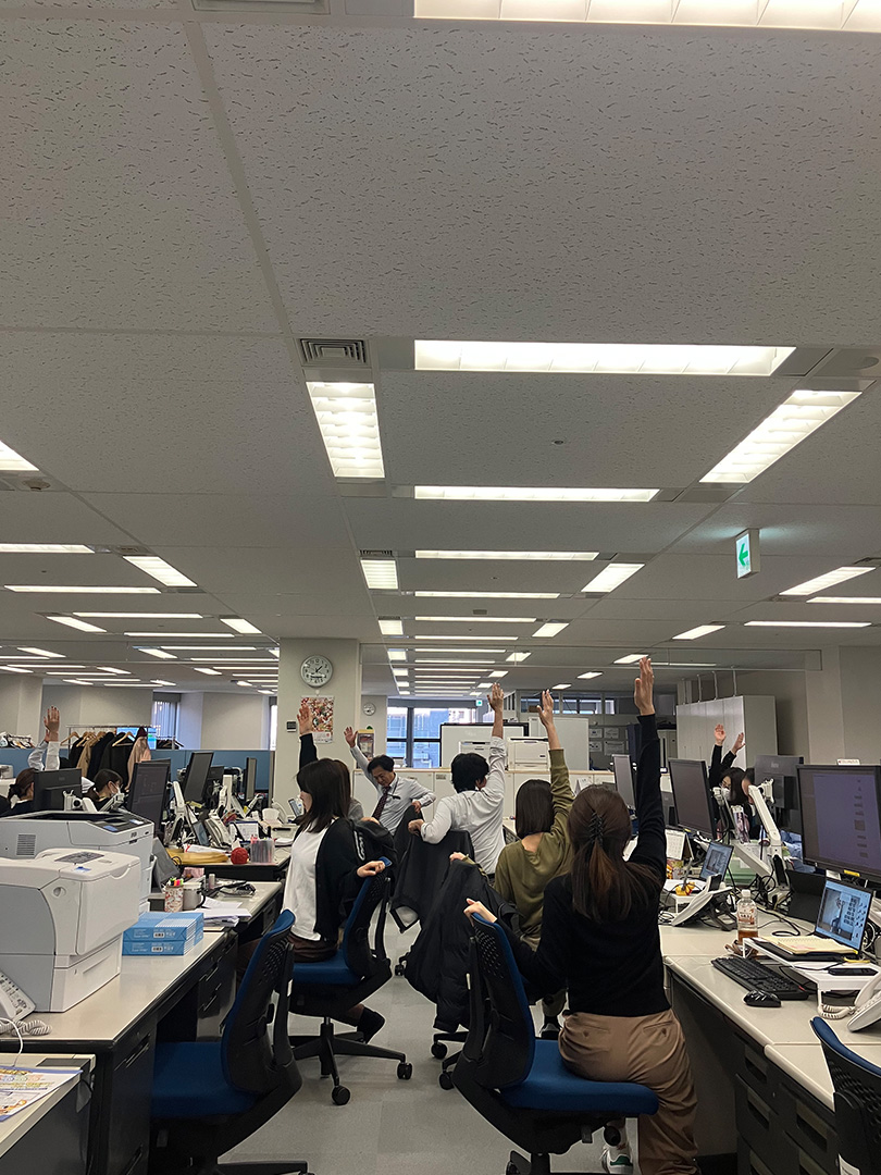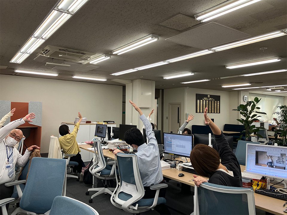全拠点を繋いだオンライン形式で実施し、同じ時間に体を動かすことで、職場全体がリフレッシュする時間となりました。